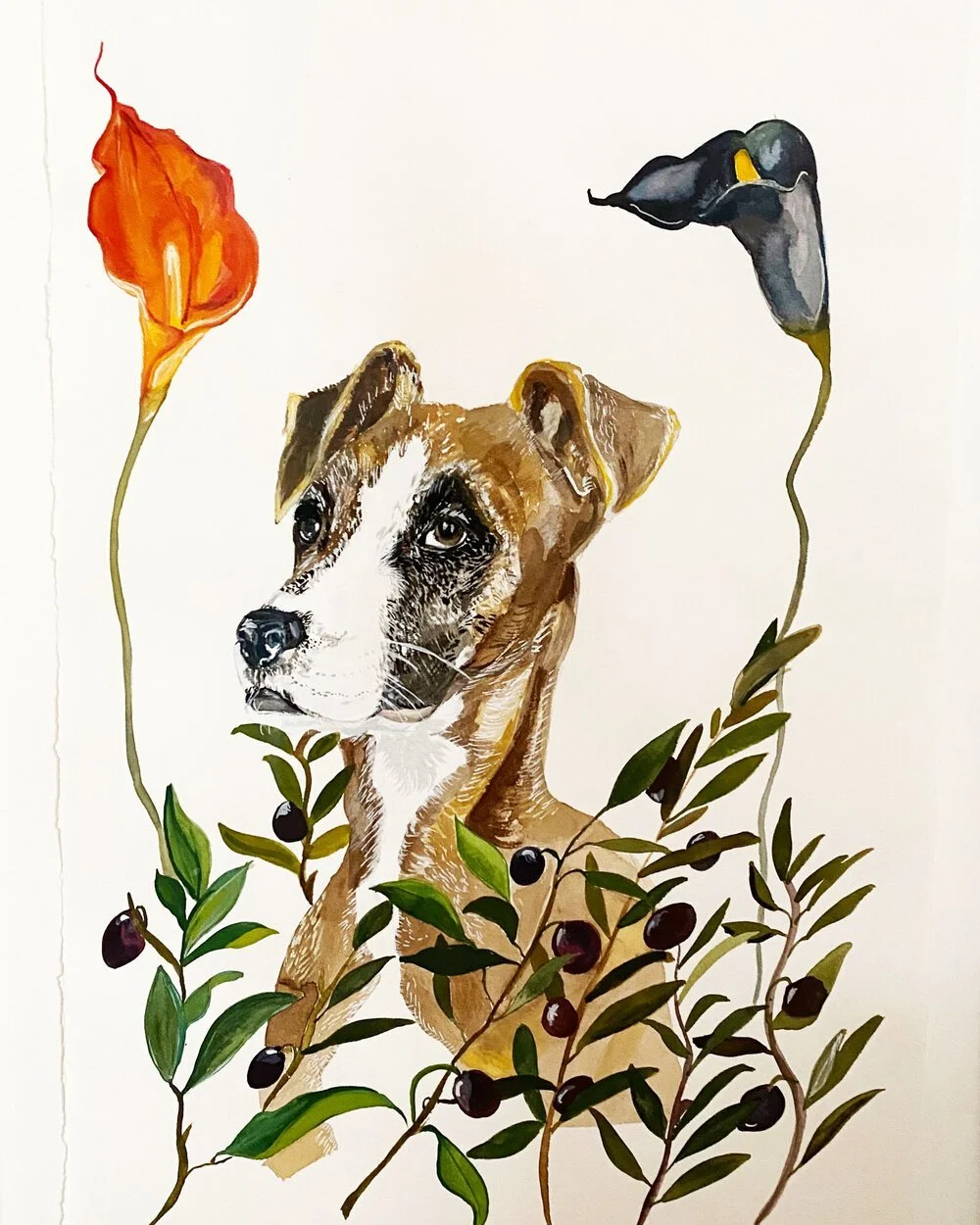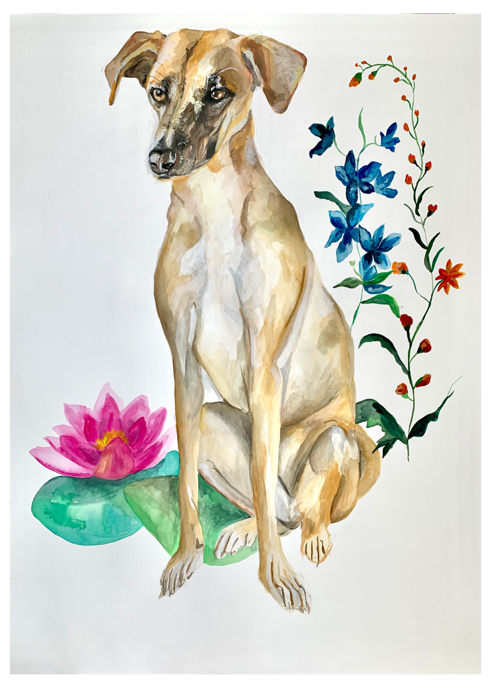 Custom paintings and design made in watercolor and gouache for a silk scarf.